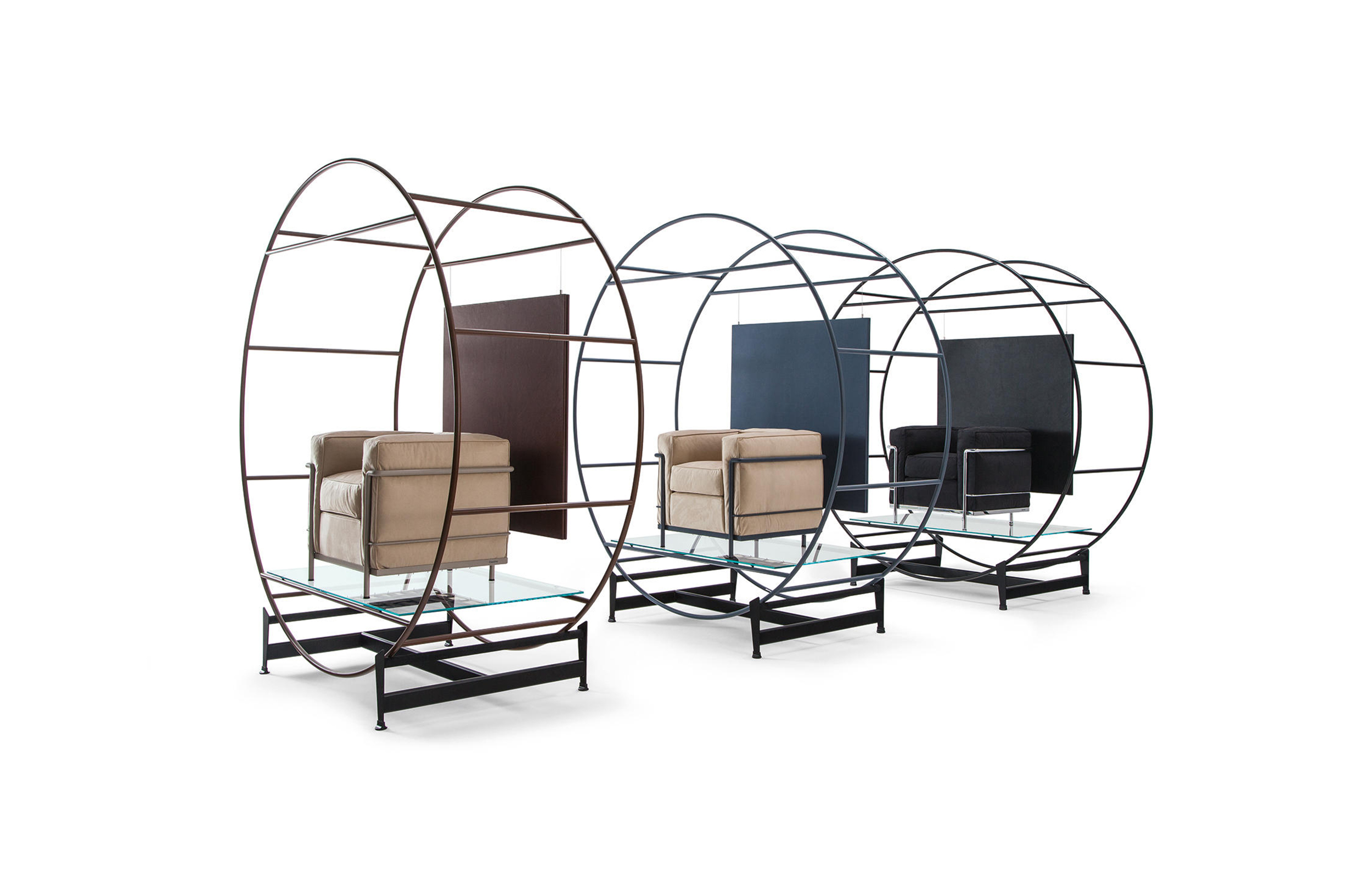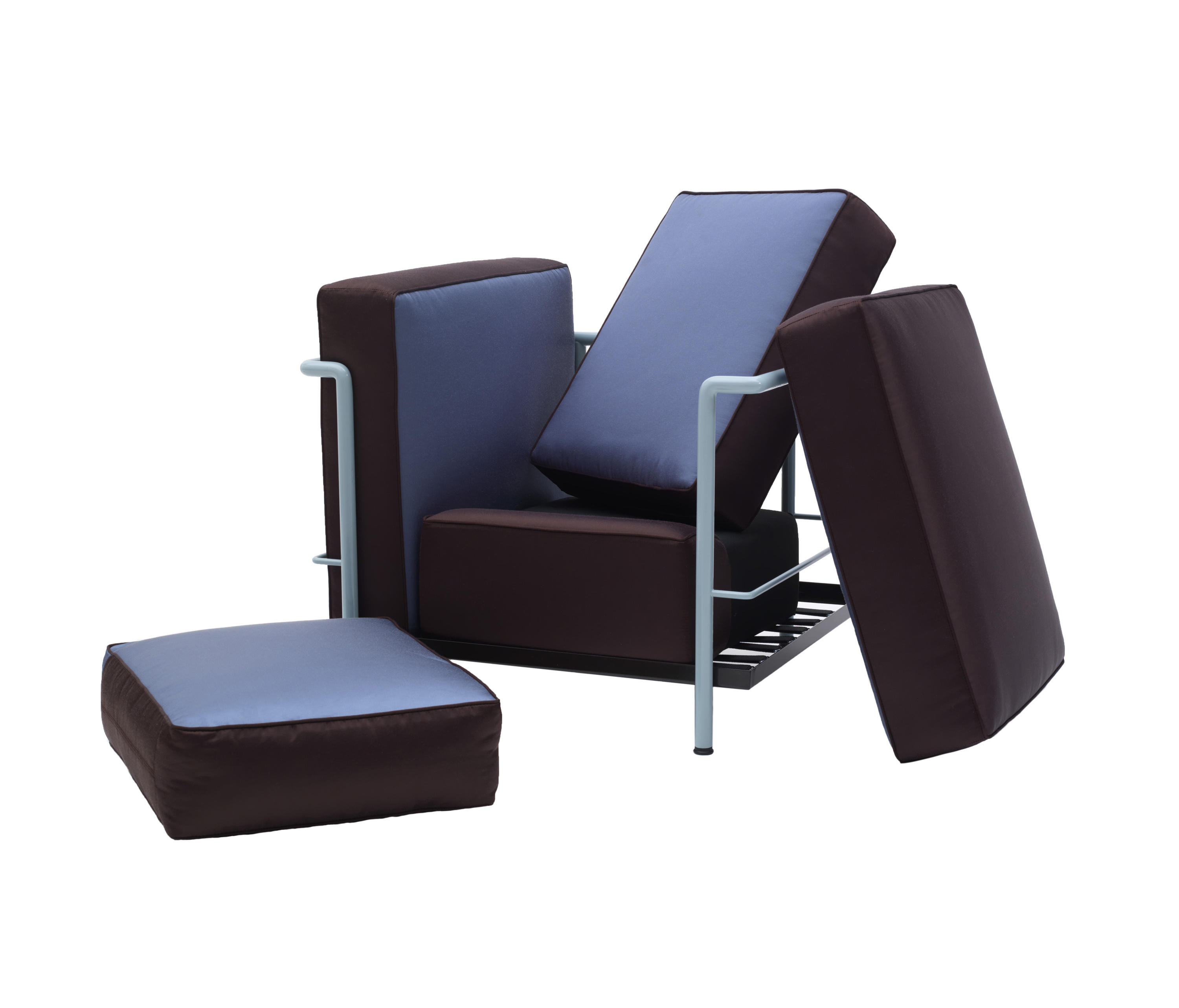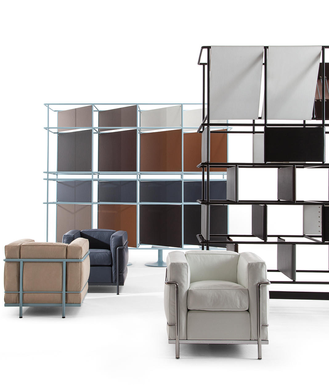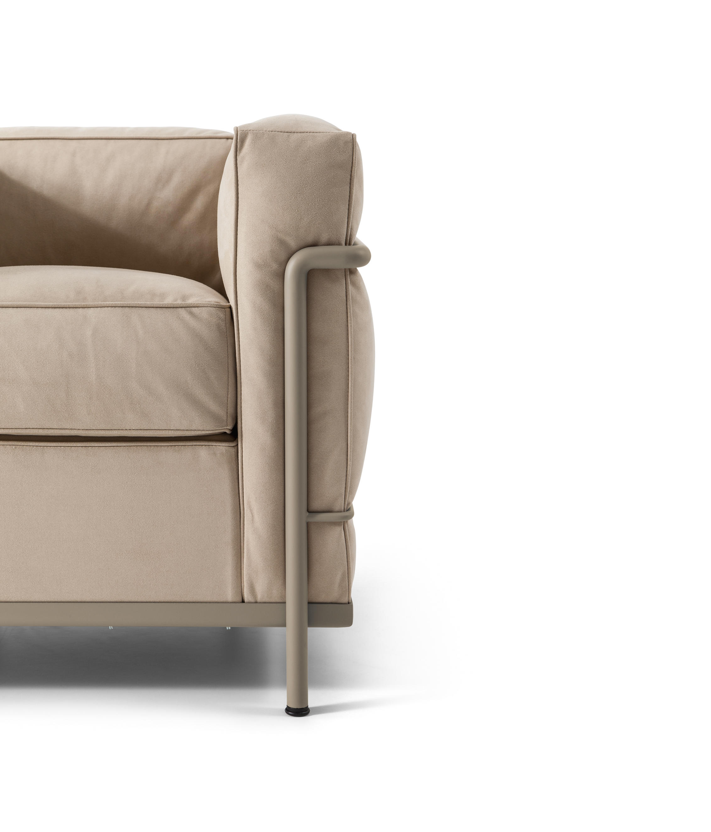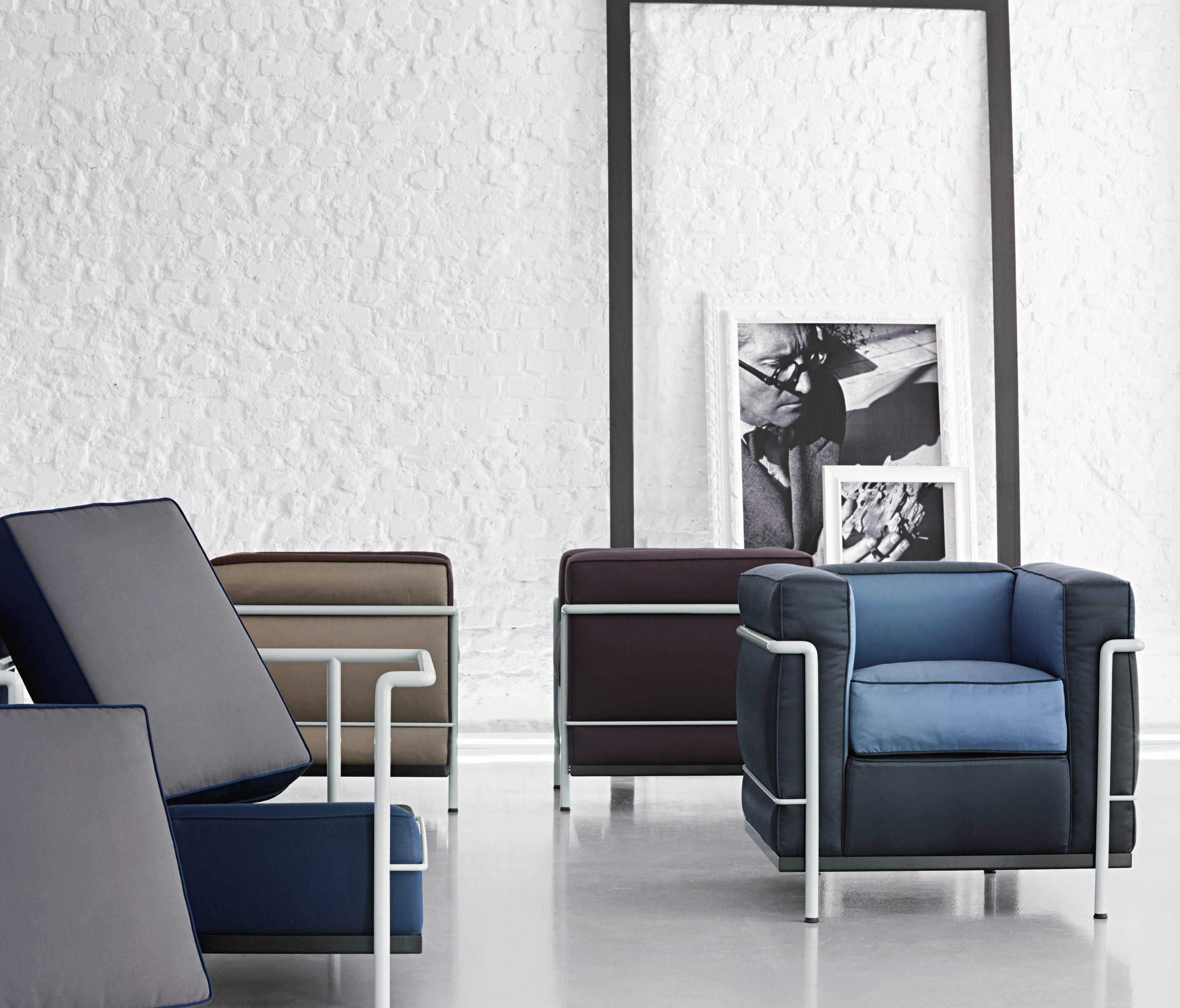 采用CR3三价镀铬钢结构或哑灰色、浅蓝、绿色、棕色、泥土色、象牙白色或黑色珐琅钢架的扶手椅,两人位或三人位沙发及脚凳。柔软的衬垫采用聚氨酯海绵和喷胶棉或聚氨酯芯羽绒棉(脚凳除外)。皮革或布艺面料软包套面。还有仅用于镀铬钢架模型的技术微纤维织物。设计史上另一个永恒的经典。于1928年设计的该款是现代椅的原型。内部靠垫与笼式框架的分离是椅子理性方法的具体肯定。真正的经典之作。
