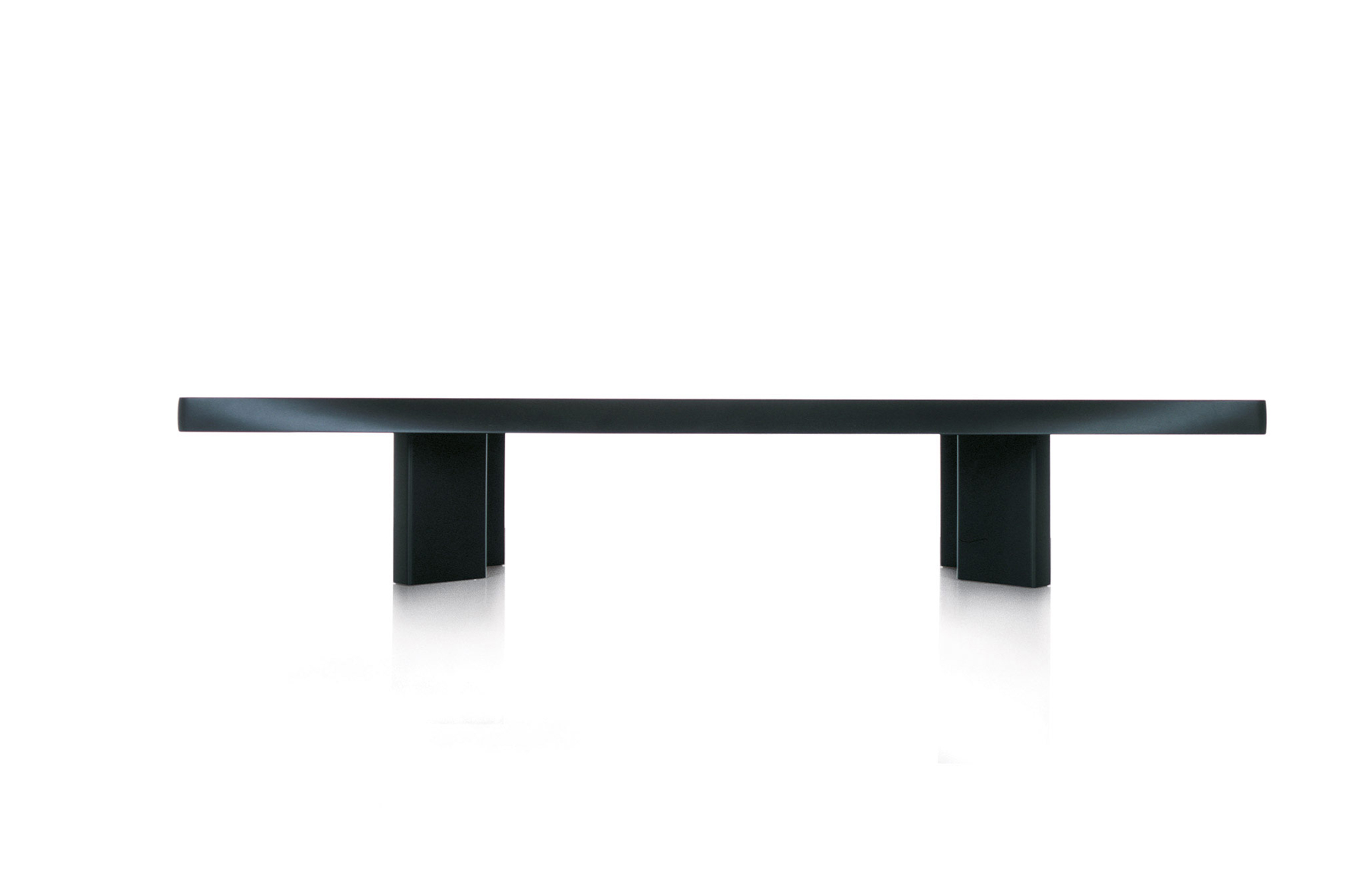 采用哑光黑色的珍贵木材或黑色实木橡木或美国黑胡桃木制造的矮桌。桌面厚度和凹面刻画了正式用语中的模型特征,并创造了令人讶异的轻盈感。该款矮桌是于1969年为日本驻巴黎大使馆设计的,这款咖啡桌是技术和中继合成的胜利。