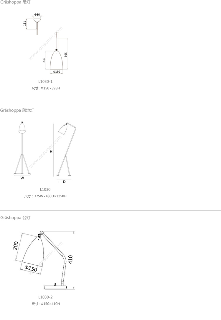Grashoppa 吊灯 系列尺寸/示意图