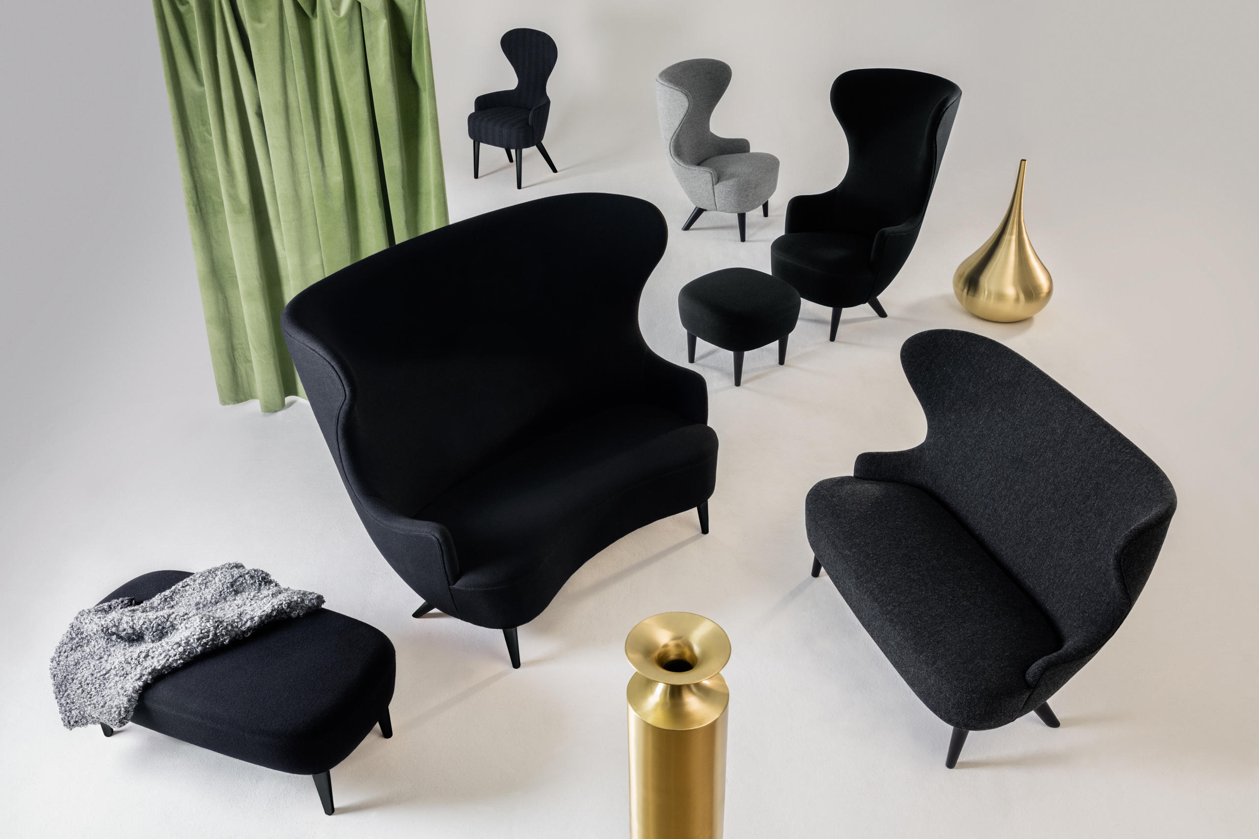 这款长脚凳被设计成与脚背沙发一起使用,以增加滑稽的层次