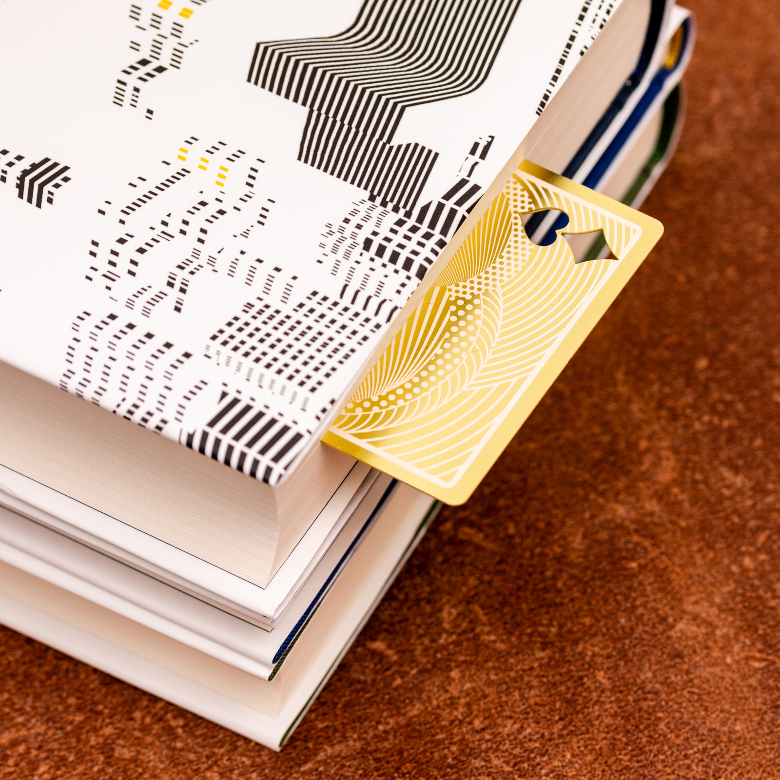 时而冷酷,时而兴高采烈(也许取决于阅读材料),小丑在书页之间滑动以保持你的位置。这个书签是由黄铜制成的,并用扑克牌图案进行数字刻蚀.该范围还包括一个羽毛笔,手指针,明信片和蒲公英。