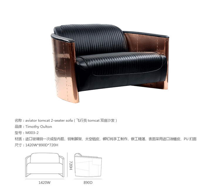 - 坐具|沙发|办公家具|设计师家具|飞行员Tomcat双座沙发