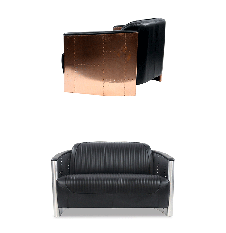 Tomcat系列家具由英国著名设计师Timothy Oulton设计,该系列包括Aviator Tomcat Chair(飞行员Tomcat椅)、Aviator Tomcat 2-seater Sofa(飞行员Tomcat双座沙发)、Aviator Tomcat 3-seater Sofa(飞行员Tomcat三座沙发)。Tomcat系列曾屡获殊荣,灵感来自F-14雄猫式战斗机。 椅子的靠手用铆接铝板制造,弧形线条符合空气动力学,有如一双机翼,座垫和靠背则使用柔软仿古皮革制造,好像飞行员夹克。