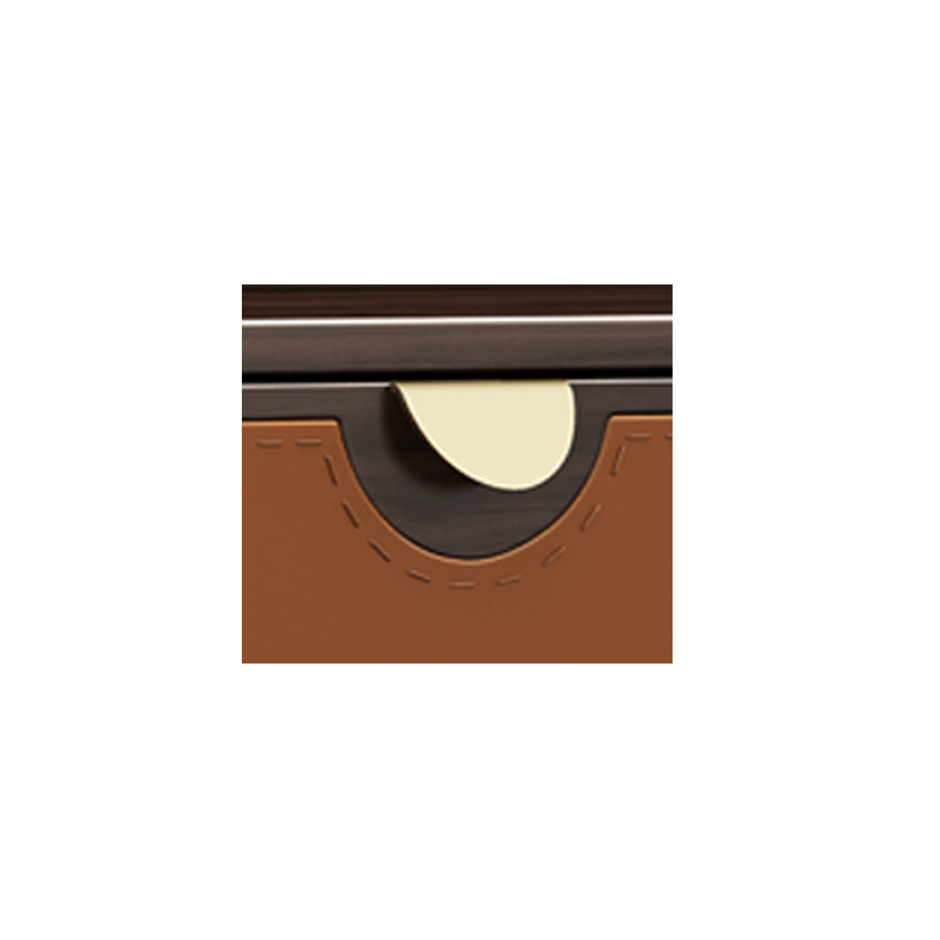 1.整体造型源于传统中式箱体,方形铜质拉手精巧别致,赋予独特中式韵味。 2.柜体腿部内收,上收下分,具有很好的视觉稳定性,稳重大方。 3.双色设计对比明快,增加视觉跳跃感与家具层次感。