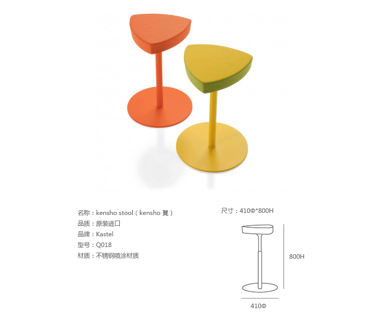 Kastel是一个在室内装饰领域极具影响力的公司,该公司具备高水平的综合生产能力,是一个充满活力的公司。Kastel公司产品多种多样,包括办公座椅,社区座椅和家庭座椅等等。Kastel在对人体工程学进行深刻研究之后,制定了现在的生产线,产品的设计以舒适为主,在生产过程中每一步都严格遵循这一宗旨,为客户提供高性能的产品,满足客户对舒适的基本要求。这也是Kastel公司的经营理念。kensho stool(kensho 凳)采用不锈钢喷涂工艺、做工精湛、圆形脚架,高度可调整,整体造型像盛开的花朵一般,颜色可选黄色,橙色,白色灰褐色、熔岩色等颜色,多张平凑在一起,宛若一个小小的花园,且与其他家居搭配非常完美和谐,集艺术性与功能性为一体。