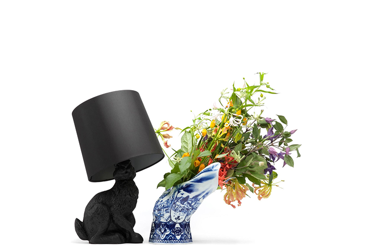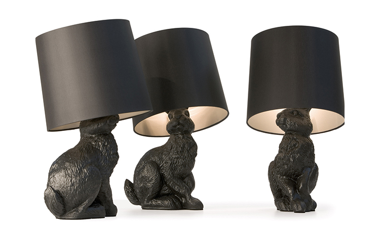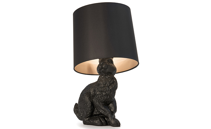 "The Rabbit Lamp has been designed by the Design Team Front Design for the Netherlands manufacturer Moooi. The table lamp is part of the three-part collection of furniture and lamps that include the real-size Horse Lamp and the Pig Table besides the Rabbit Lamp.The rabbit-body consists of fibre glass. The lamp’s shade is made out of a PVC/viscose-material that has been tensed on a metal frame and closed to its top."