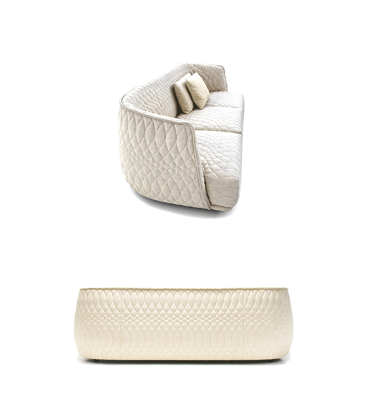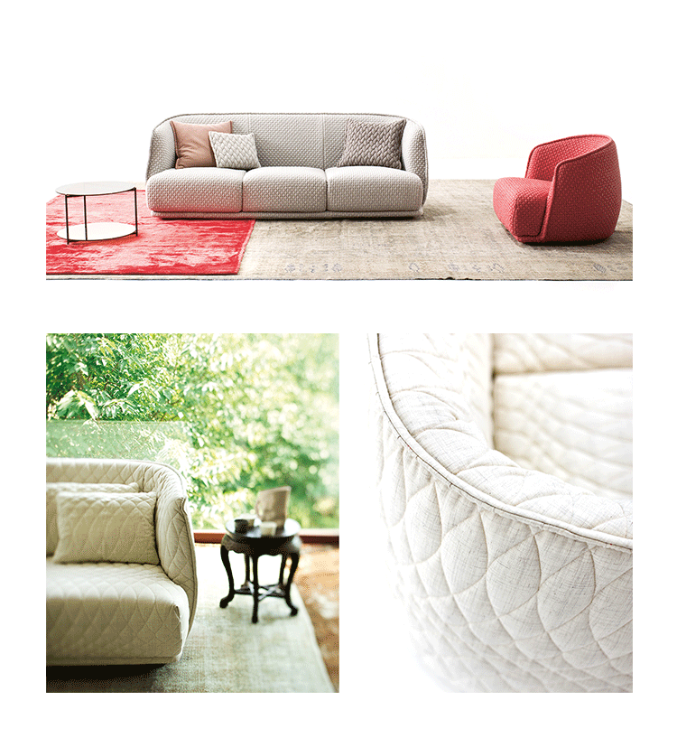 Redondo is an elegant seating collection which includes two sizes of armchairs and sofas as well as various customizable elements.The armchair and small armchair feature injected flame-retardant foam over an internal steel frame with polypropylene glides in your choice of upholstery.All covers are quilted in a design by Patricia Urquiola as an integral aesthetic of this collection.The Redondo seat cushions are polyurethane foam & polyester fiberfill.Optional back cushions are goose down and offered online in one size but available in a variety of sizes(please call to specify).Covers are removable.