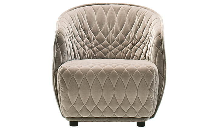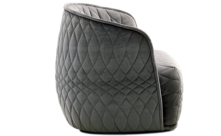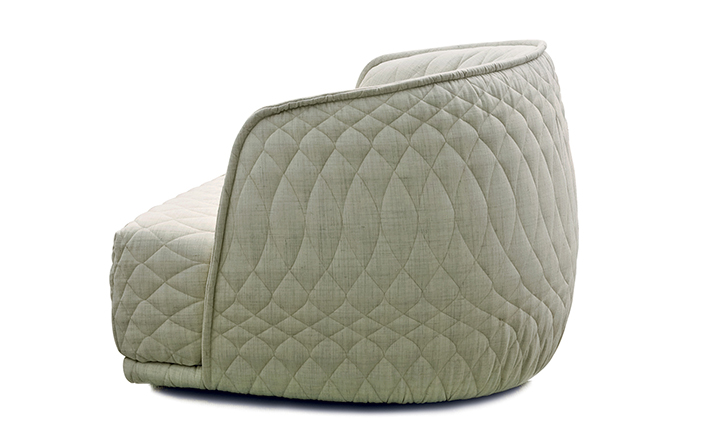 Redondo is a set of seating elements designed by Patricia Urquiola for Moroso.Its distinctive theme is roundness,and indeed the name in Spanish means“round”.The system comprises a sofa and two snug armchairs that evoke an almost "protective" intimacy.The line and form of the structure are reminiscent of a brandy glass:it consists of two adjoining volumes that together form a cocooning seat, like a shell.It does not require the addition of numerous cushions.Redondo's curved shapes are accentuated by the complete absence of corners and by the soft fabric,chosen to offer sensory stimulation,and embellished with a quilted decoration in which the thread,like a pencil,draws elegant three-dimensional geometries.