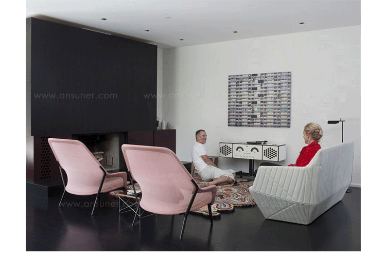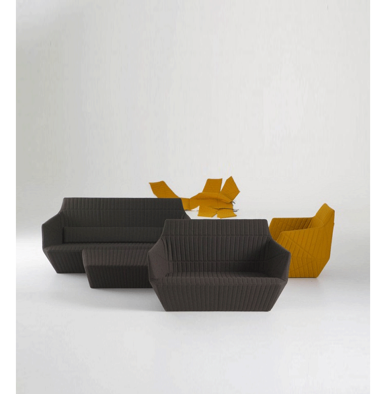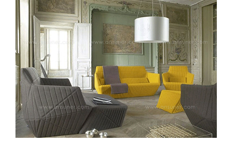 Facett沙发来自写意空间的设计师Bouroullec兄弟,其设计灵感来自于充满童趣的折纸游戏,所以我们能看到产品的造型具有几何色彩,丰富的折线仿佛随时会变出一个个多边形,给人意想不到的乐趣。写意空间Facett沙发不像多数布艺沙发那样走柔美温和路线,它刚毅硬朗的线条仿佛是轮廓分明的男子,给人坚毅的感觉。无论是暗灰还是明黄,冷色还是暖色,都传递出冷冽的质感。搭配在黑白空间里,是最合适的选择。除了造型,Facett沙发采用的布料也很特别,并没有追求植绒的细腻和棉布的柔软,进口布艺充满立体感,非常符合沙发造型的设计理念。家里摆放这么一款家具,即使不使用,单纯用来欣赏也是值得的。