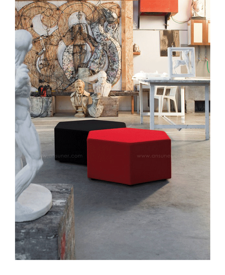 ESA Pouf(ESA墩)是日本设计师Kazuhide Takahama设计的,高浜和秀(Kazuhide Takahama)1930年出生在日本宫崎县,1953年毕业于东京工业大学的建筑系,之后几年便到意大利发展,在他的作品中就能够看到日本与西方文化相结合的特点。ESA Pouf(ESA)是一六角形坐垫(凳),极富个性,并且能根据您的想象力和创造力随意组合。制作采用进口玻璃钢内胆一次成型、高密度海绵、进口布艺或皮革(颜色可选)。
