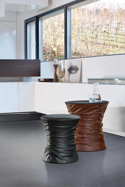 创新的设计源于对不寻常的想法进行塑造的勇气。Bellows Collection系列就是一个例子,凳子和桌子的设计令人眼前一亮,并达到了我们的预期。柔软的皮革褶皱的包裹在坚固的框架上。褶皱程度随着它的高度而改变。用一个最简单的动作,便可以利用隐藏于座椅下的环形扳机进行高度调节。