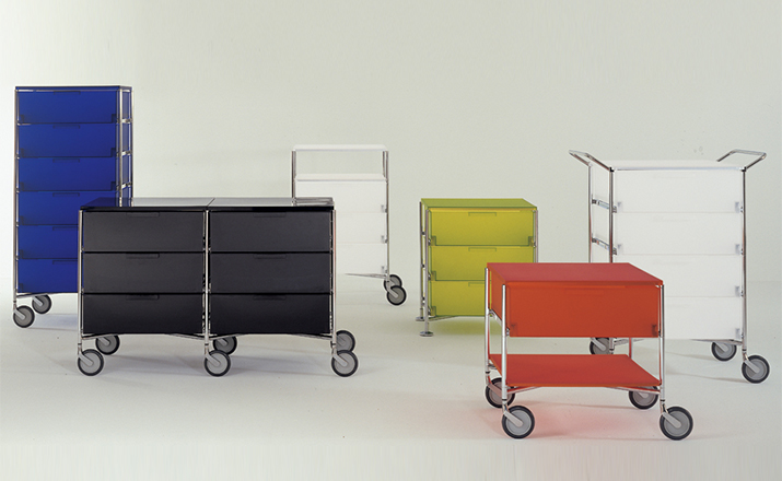 Mobil storage(移动储物柜)是由意大利国宝级设计师Antonio Citterio(安东尼·奇特里奥)设计的,他的设计跨越三大洲,已成为设计领域最活跃的渊博人士,1972年,他与著名品牌Arclinea厨具、flexform、Flos灯具等合作,1987年,为B&B设计的座椅获金罗盘奖.Mobil取自移动机制知名,带有随处收纳、移动变幻的多元满足,以多层抽屉式的收纳,搭配置物层版,不论是作为床边柜、工作室文件抽屉、生活收纳等,都非常合适。此外,另可选择滑轮式样、或是固定式座脚,自在搭配。