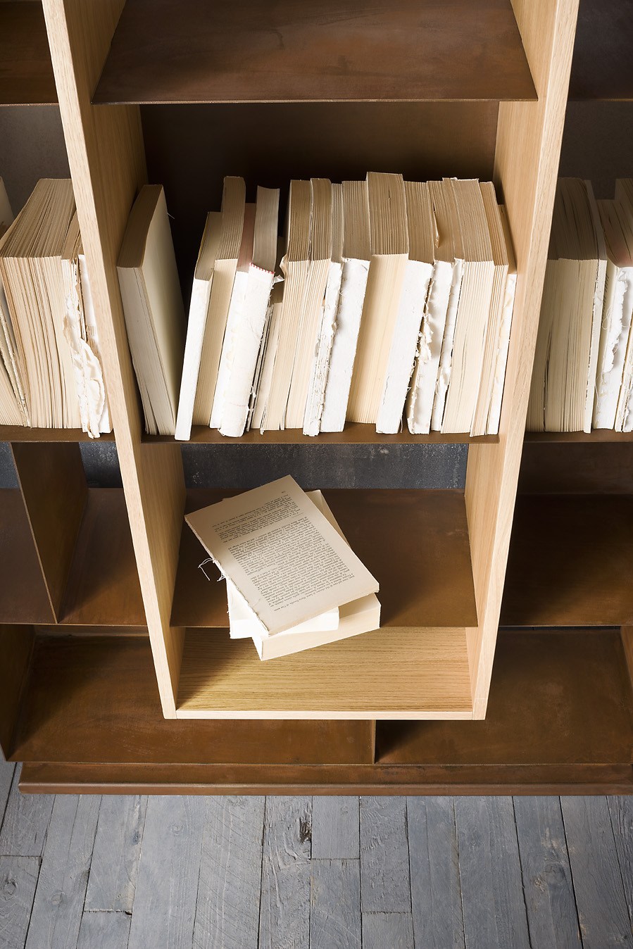 Mooie,一个铁瓶架和书柜,具有双重性质。葡萄酒爱好者在适当的架子上展示他们的美酒,也可以通过收藏个人藏书成为房子知识的摇篮。