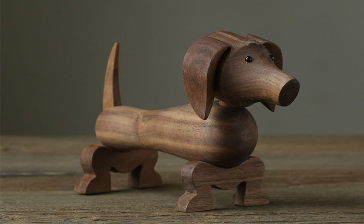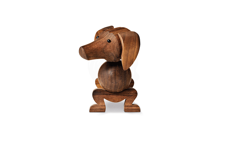 Dachshund Dog(腊肠狗)设计于1934年,出自丹麦设计大师 Kay Bojesen 的设计作品,精致的木制动物系列,是 Kay Bojesen 为人熟知的珍藏作品系列,采用不同的橡木、枫木、柚木等原木素材,保留木材的独特纹理,刻画出各种不同让人莞尔一笑的动物姿态,跳脱生活中的烦琐与紧张,简单的玩偶,轻松的神情,带您回归孩时的天真与简单快乐。精致而限量珍藏的作品系列,适合您作为桌面摆设,或是作为送礼小物,分享您生活中的快乐写意。