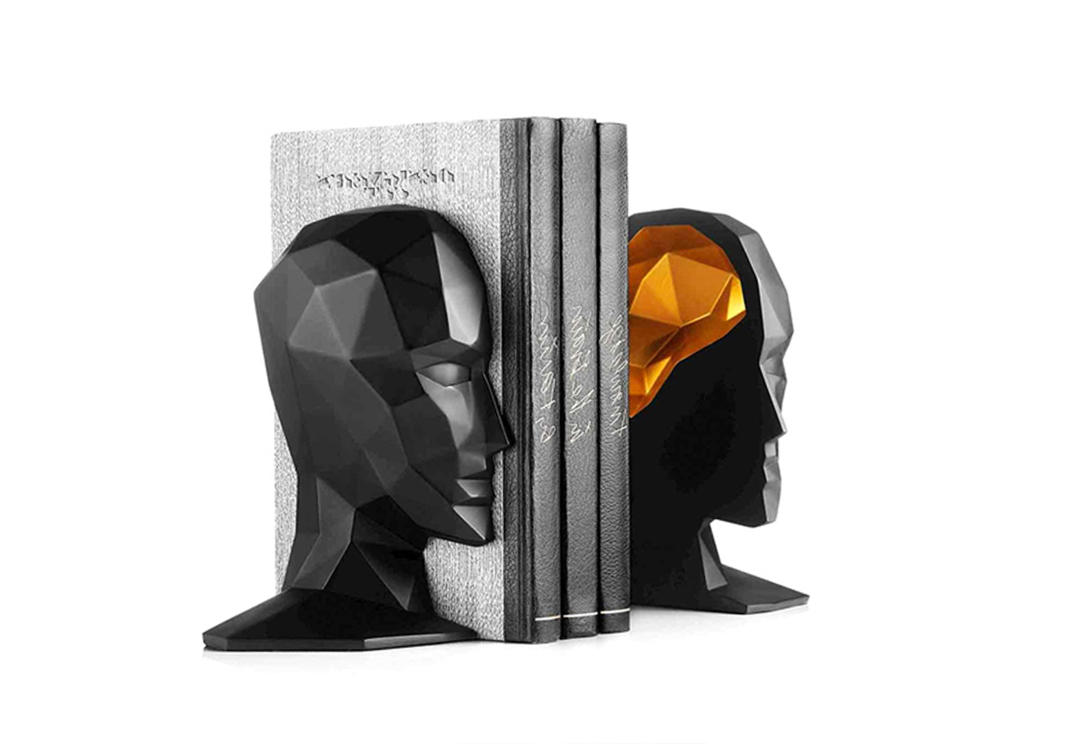 卡里姆·拉希德是他那一代人中最伟大的设计大师之一。当我们让他自由设计一个用于独立的书档时,他创造了一个真正独特的书档。基于他自己头部的三维表示。然后将石头树脂形状切成两半,用不同的颜色展示大脑,这样它就有了自己的生命。这是一个经典的书档,可以用一点额外的知识把你所有的珍贵书籍收集起来。