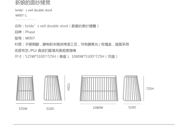 - 坐具|吧椅/凳子|办公家具|设计师家具|新娘的面纱双人凳