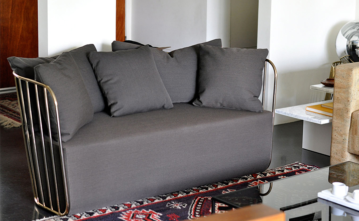 "The Bride's Veil Stool family’s unique language is meant as a graceful alternative to the archetypal bar stool.The double stool is the perfect solution for you and your date to enjoy sitting together uninhibited by separate stools.The strikingly elegant metal base is available in smoked brass,polished chrome,burnt copper,or powder coat,while the top is offered in COM upholstery.At every angle these stools offer a visual treat."