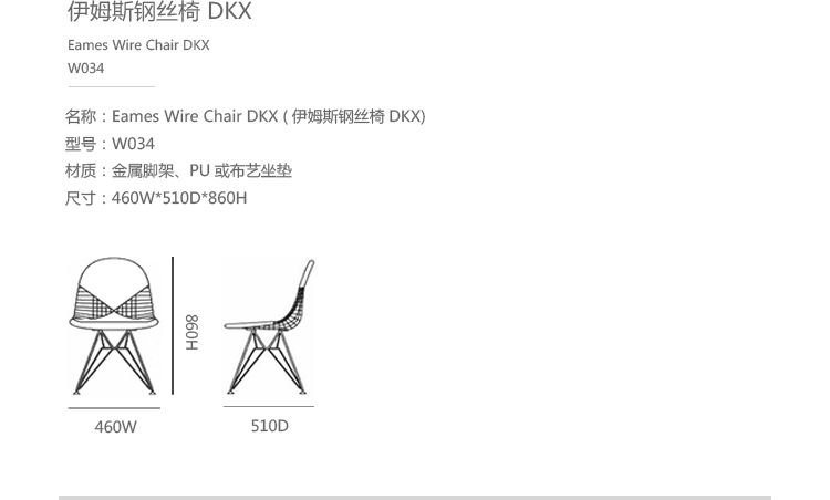 - 坐具|餐椅|办公家具|设计师家具|伊姆斯钢丝椅DKX