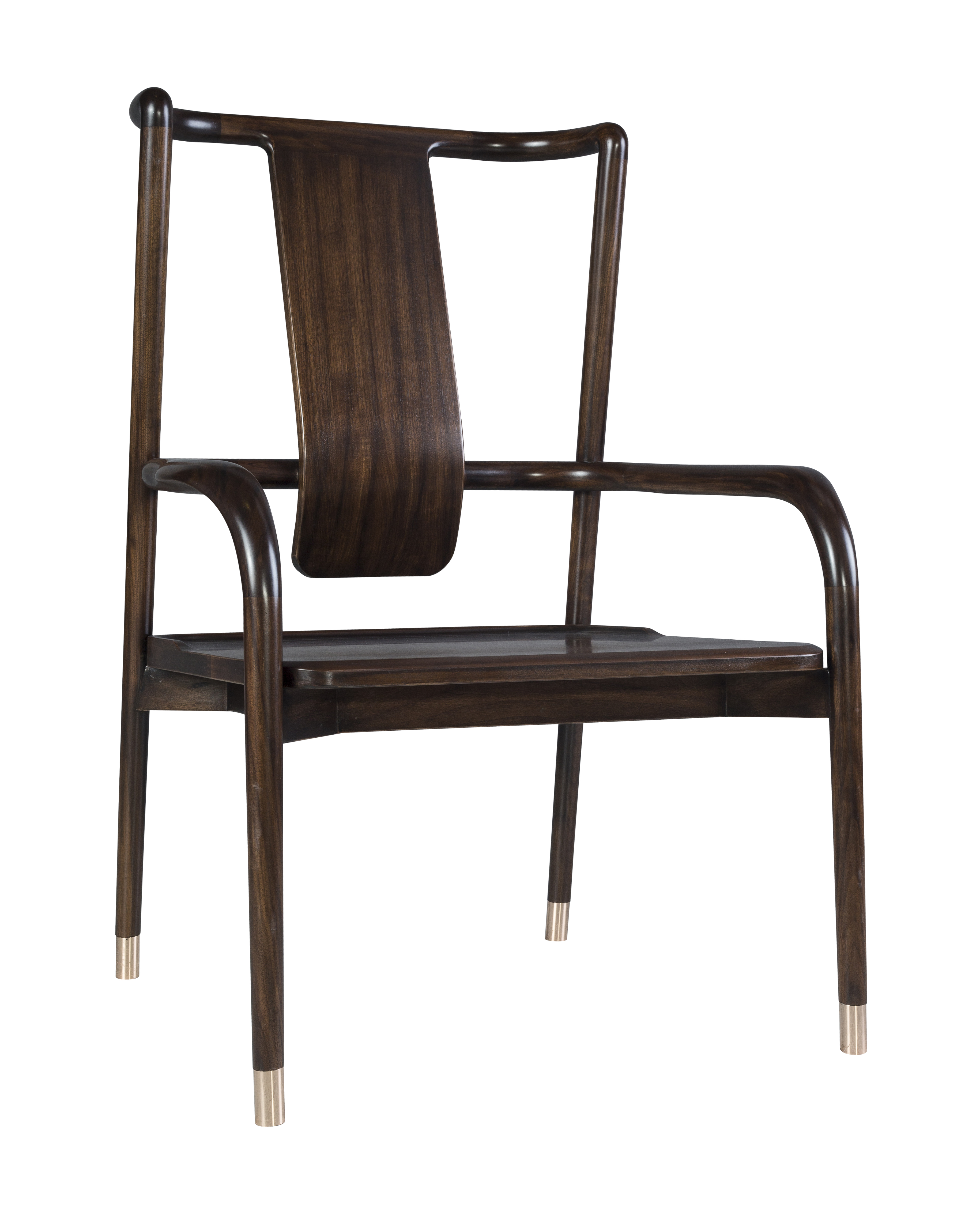 1.秉承明式家具形制,简洁干练,以线为主,通透灵动。 2.靠背板采用光素手法,素雅大方,通透灵动。 3.铜脚设计,赋予新海派韵味的同时防磨损。