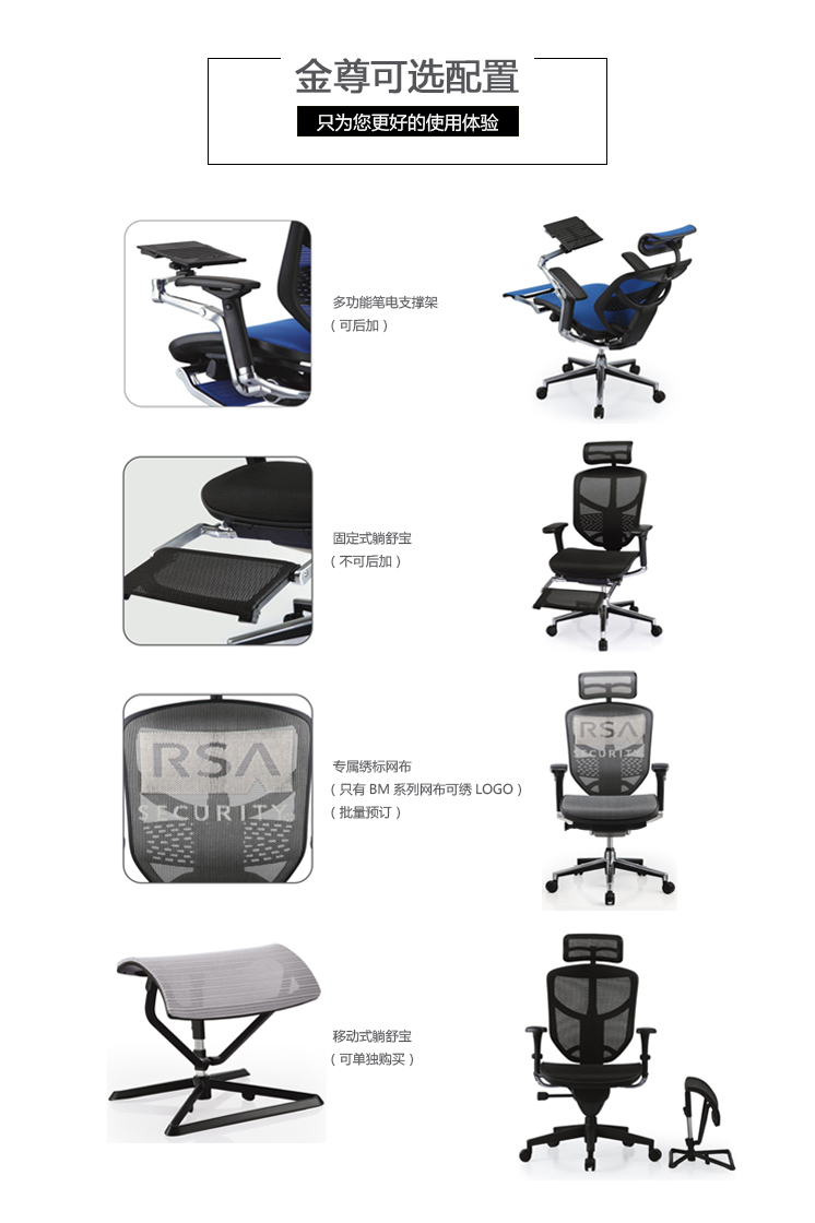 金尊系列覆盖了办公室所有用椅空间的需求,从主管、职员到访客,从办公到教育训练,皆有合适的椅型,可以说是最完整的产品组合设计