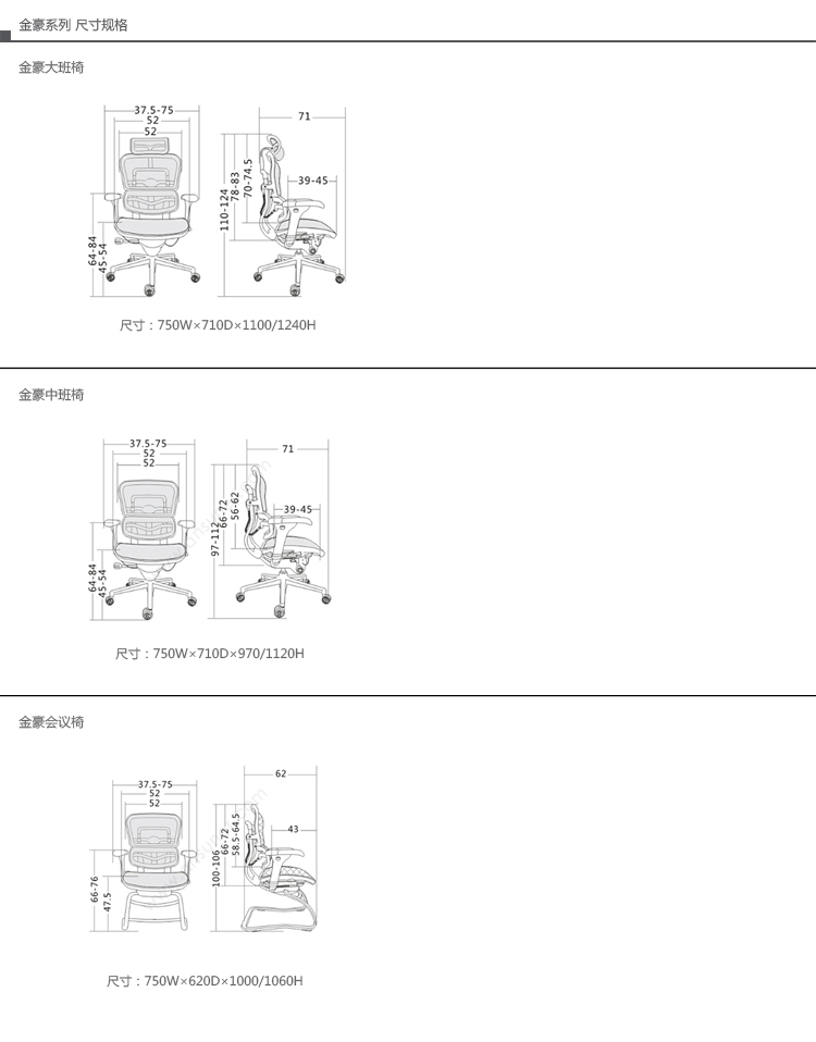 金豪系列采用完全性多功能调整设计,从头枕、椅背、扶手与座垫可进行全方位的调整