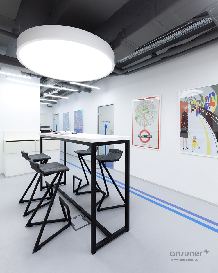 Underhub是乌克兰基辅本地的一家现代语言学校,同时这里还兼做联合办公空间,设有共享工作区、会议室和休息区。本案的设计灵感来自伦敦的地铁环境设计,将靓丽的导向色彩引入到室内设计中。如此充满创意的设计构想来自于基辅本地的一位才华横溢的建筑设计师 Emil Dervish。