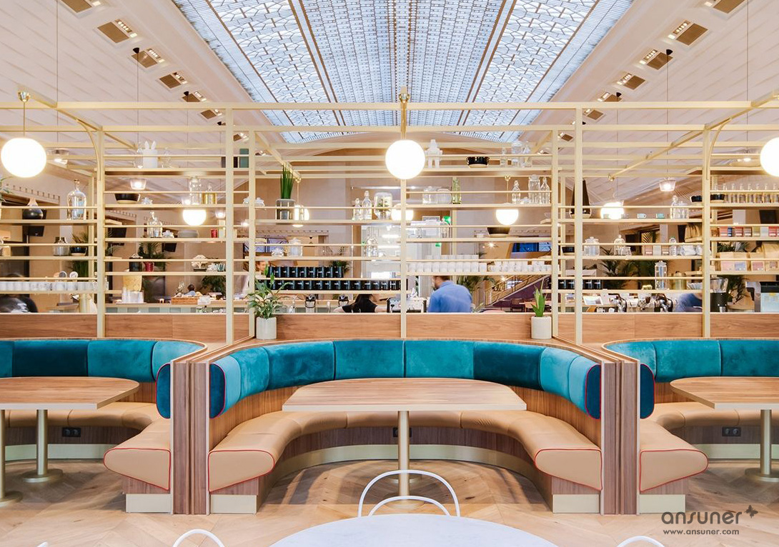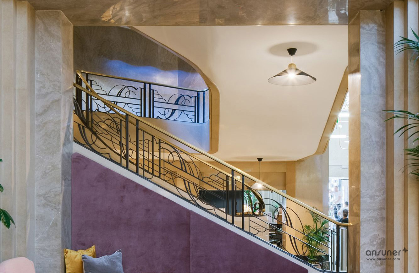 恢宏、华丽又明亮的玻璃穹顶带来令人震撼的空间视觉。跨越11层,新的办公空间保留了20 世纪 20 年代的经典装饰图形,在丰富的金属色和奢华的纺织面料衬托下,彰显出强烈的Art Deco装饰主义风格。在向这个城市的历史致敬的同时,又赋予其现代化的精髓。