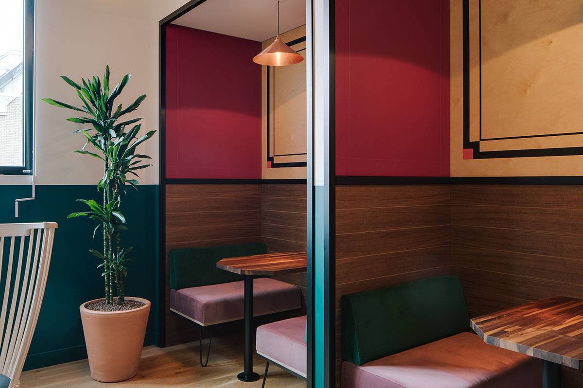 中庭外围的半开放空间设置了车厢卡座,更适合小组讨论或是私人会议。延伸向户外的露台可以远眺巴黎市景,是员工休息小聚的好去处。