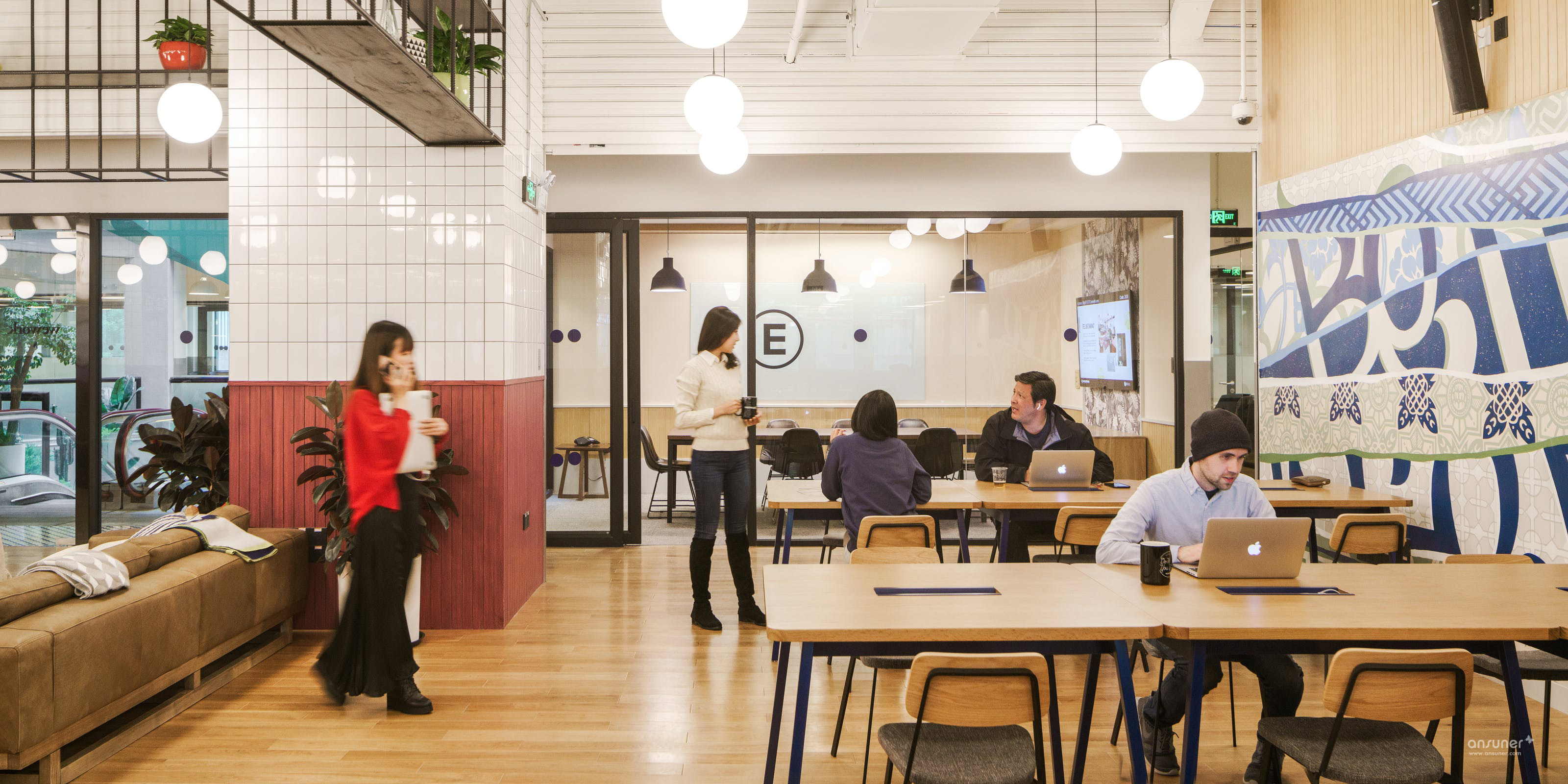 WeWork 延安东路588号,毗邻西北风味餐厅一条街,其设计灵感来源于中国丝绸之路。起源于两千多年前的中国古代丝绸之路,架起了东西方古老文明间的贸易、语言以及文化沟通桥梁,这和WeWork鼓励会员之间的分享、沟通及交流的共享精神不谋而合。