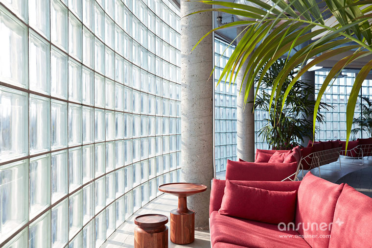 他们将既有的建筑外皮拆除,除去所有会影响玻璃砖曲面的非结构性元素;内部设计了大型的回旋楼梯环绕着中庭,通透的天光从中央撒下,刷亮了室内白墙与抛光的混凝土地板。四层楼的建筑,每层皆装饰以不同的城市、颜色、图腾和材质的元素主题,分别来自阿根廷布宜诺斯艾利斯、日本京都、印度斋浦尔和荷兰阿姆斯特丹等四个城市,与 Airbnb融入世界各地,包容多元文化的特性相呼应。各楼层的会议空间,则以各地的 Airbnb 房源为灵感,比如其中一间房呈现英式城堡的面貌,搭配绿色、红色的簇饰沙发和维多利亚风格窗;另一间则来自 1880 年美国蒙大拿州的监狱为概念,装饰以燃木壁炉、吊灯与动物皮毛等物件,充满独特风格。工作场域则被切割成 16 个风格迥异的邻里空间,每个空间都设有会议室、电话间还有大张的共同工作长桌,而其中一个名为「The Castle」的空间将地板相连接,以松木板覆盖;顶楼「The Boat」,设有象是舒服巢穴般的办公室,为工作提供更多隐蔽性,其余还有瑜珈空间、个人储物区和健康中心等空间。