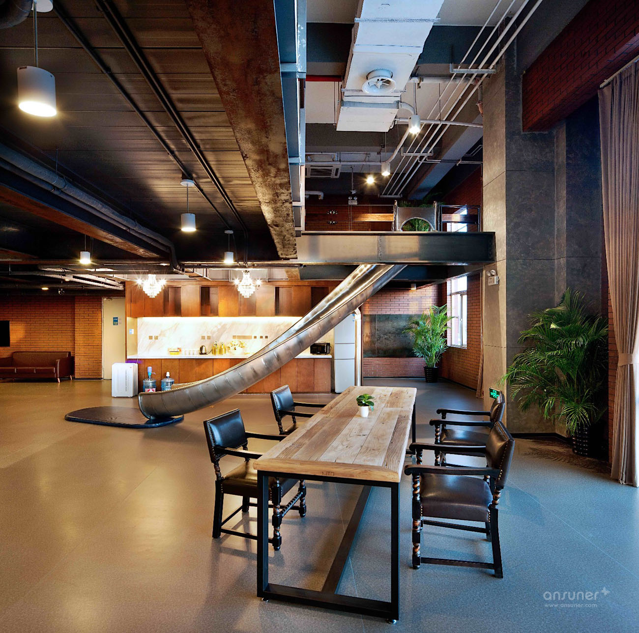 不隐藏天花板上的管线,而是在繁杂中寻找秩序,这样做既可以拥有挑高的天花,也可以恰当地打造出工业风格——就让电线自然垂放吧,不做作正是工业风的精神!
