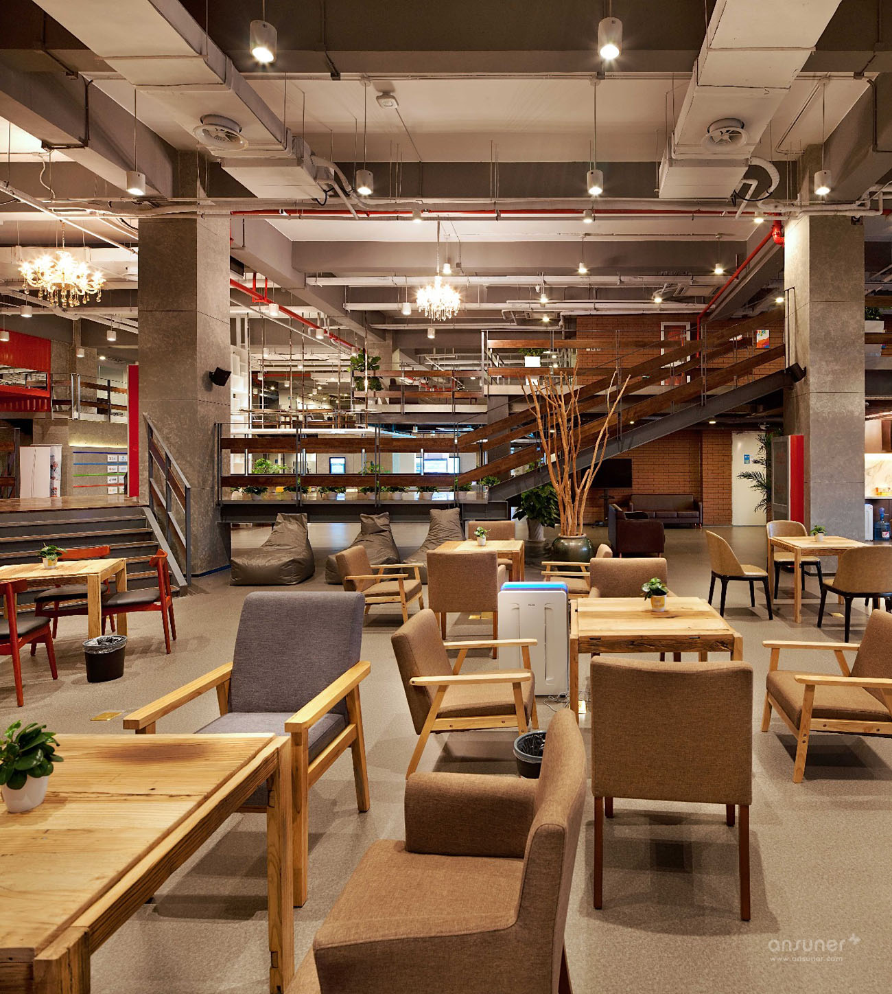 艾迪尔为太库打造了位于河北固安的孵化创新中心。固安太库孵化创新中心更像是一种多元文化的思考方式,大胆地将工业风的活力与现代工作方式的需求相结合,兼容休闲办公与时代创新,反映出后工业时代个性化的美学观点。