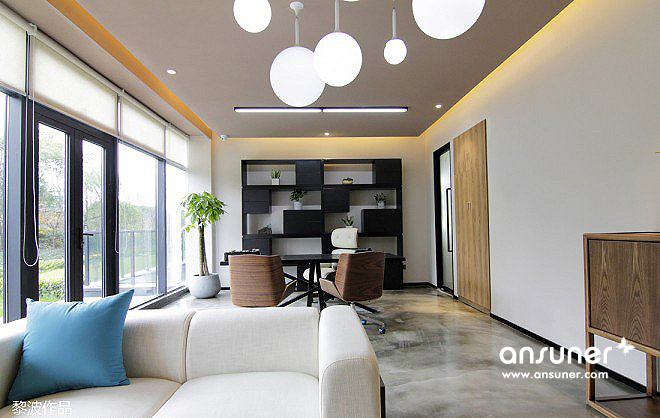 有效区分了空间,同时,将工作和休闲进行融合。整个空间在动线功能分区上更加开放、通透、亲密。
