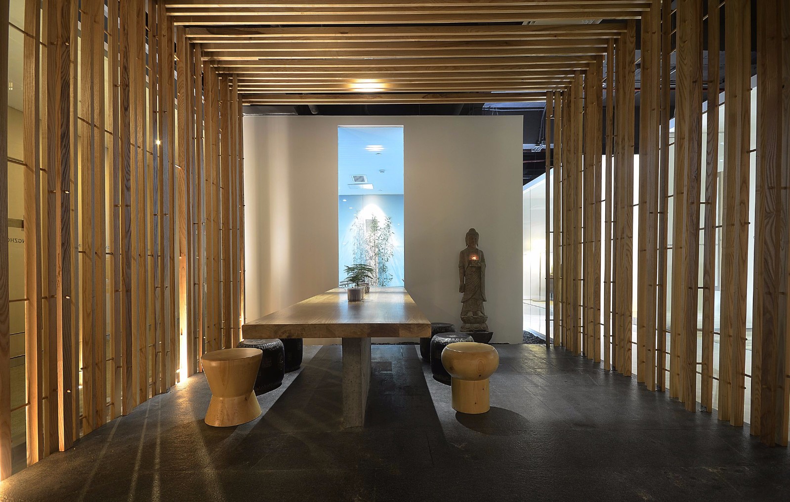 木质结构在传统的榫卯结构当中简化、固定,让整体更显自然。