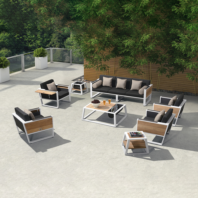 设计灵感:豪华游艇 “贵族”---极具质感的金属外框搭配天然缅甸柚木,像游艇一般体现独有的英朗贵族气质; “功能”---沙发扶手侧板具备半自动可收放功能,单向阻尼系统增加产品安全性和静音性,像游艇夹板一般给客人带来多一份享受的空间 “精品”---约克系列自面世以来一直是悍高最受青睐的设计之一,引爆全球。 约克户外休闲系列打破常规的户外家具设计,不再是纯粹的藤编风格。由天然柚木、舒适特斯林、及白色外框巧妙搭配,衬托出简约但却充满质感的视觉效果。 天然柚木配以优质柔软海绵,给人们带来足不出户即可享受到的舒适户外休闲生活。沙发右边侧板采 用半自动可收放的柚木侧板,使产品空间利用最大化;茶几部位增加冰桶,提升用户户外体验。 约克户外休闲系列自面市以来一直是最受青睐的设计之一,全球共享。现代设计元素的应用,令产品充满青春 阳光的气息。与现代建筑风格融为一体的立体感,York 是全球各大豪华酒店的不二之选。